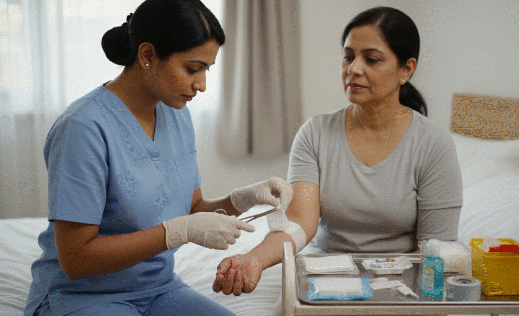 We offer professional Wound Care & Dressing services at home for post-surgical, diabetic, or chronic wounds — ensuring infection control and faster healing.